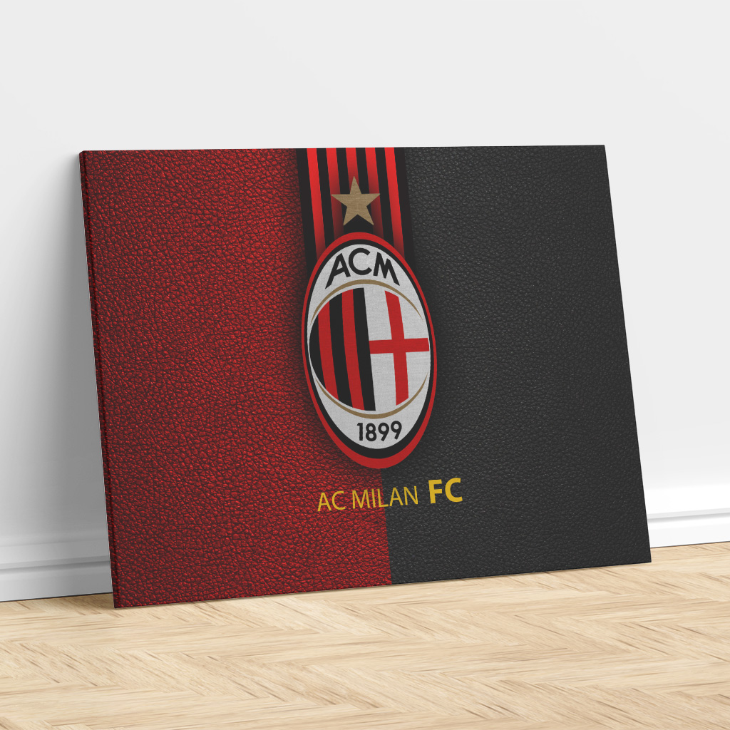 Premium ready made canvas print featuring the AC Milan FC emblem in iconic red and black. Available in 45x30cm, 60x40cm, 75x50cm, 90x60cm and 120x80cm sizes with mirrored 2cm edges. Ready to hang with free delivery across Malta and Gozo. Website Only Orders at these prices.