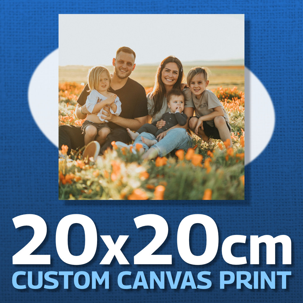 20x20cm custom canvas print. Printed exactly as previewed with mirrored 2cm edges and a ready to hang system. Premium 280gsm matte canvas and HP Latex inks. Free delivery across Malta and Gozo. Website Only Orders at these prices.