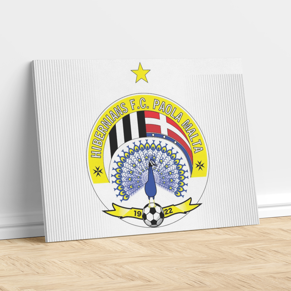 Celebrate your love for Maltese football with this premium ready made canvas print featuring the proud crest of Hibernians F.C., Paola. Showcasing the distinctive peacock symbol and the club’s iconic colours, this elegant artwork reflects the tradition, resilience and passion behind one of Malta’s most successful football teams. As Malta’s leading canvas manufacturer, we deliver gallery grade pieces at heavily reduced prices while keeping the highest level of quality.